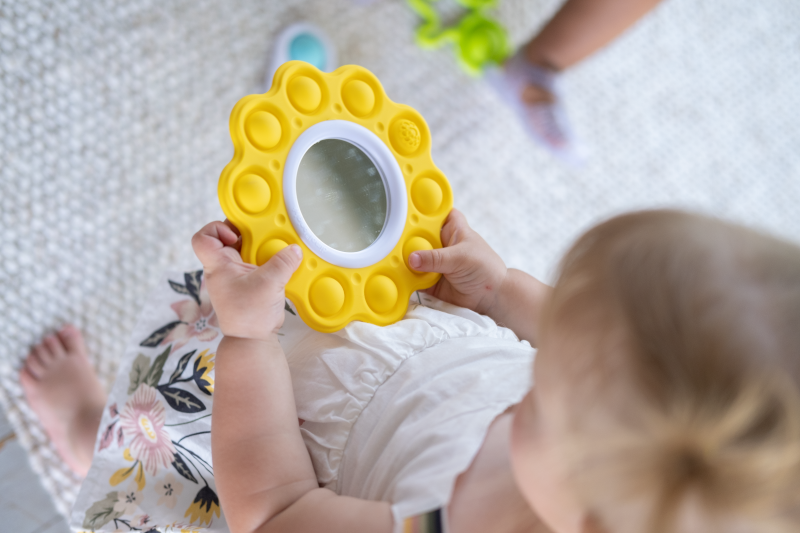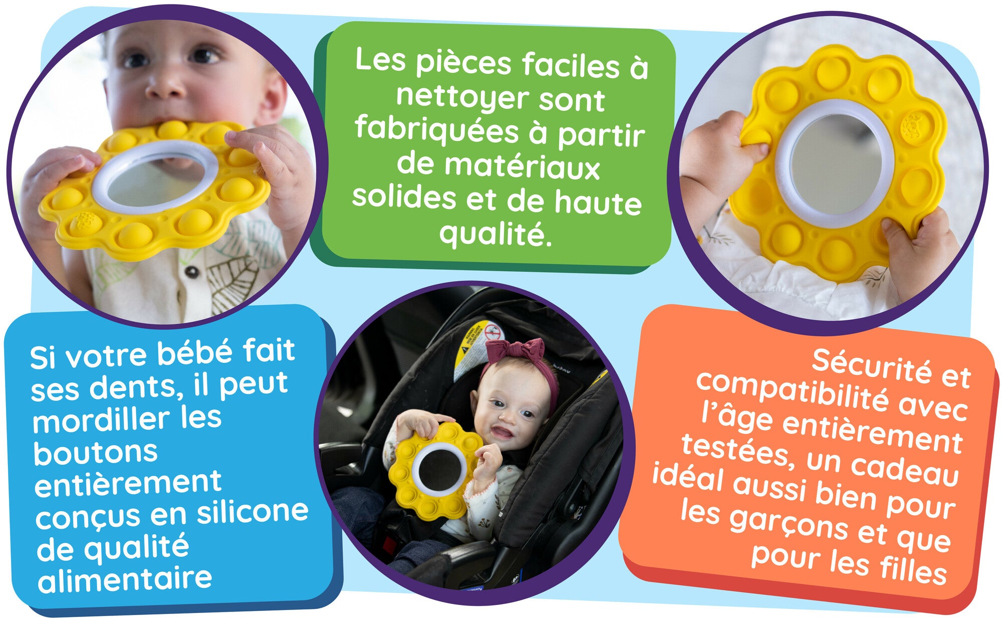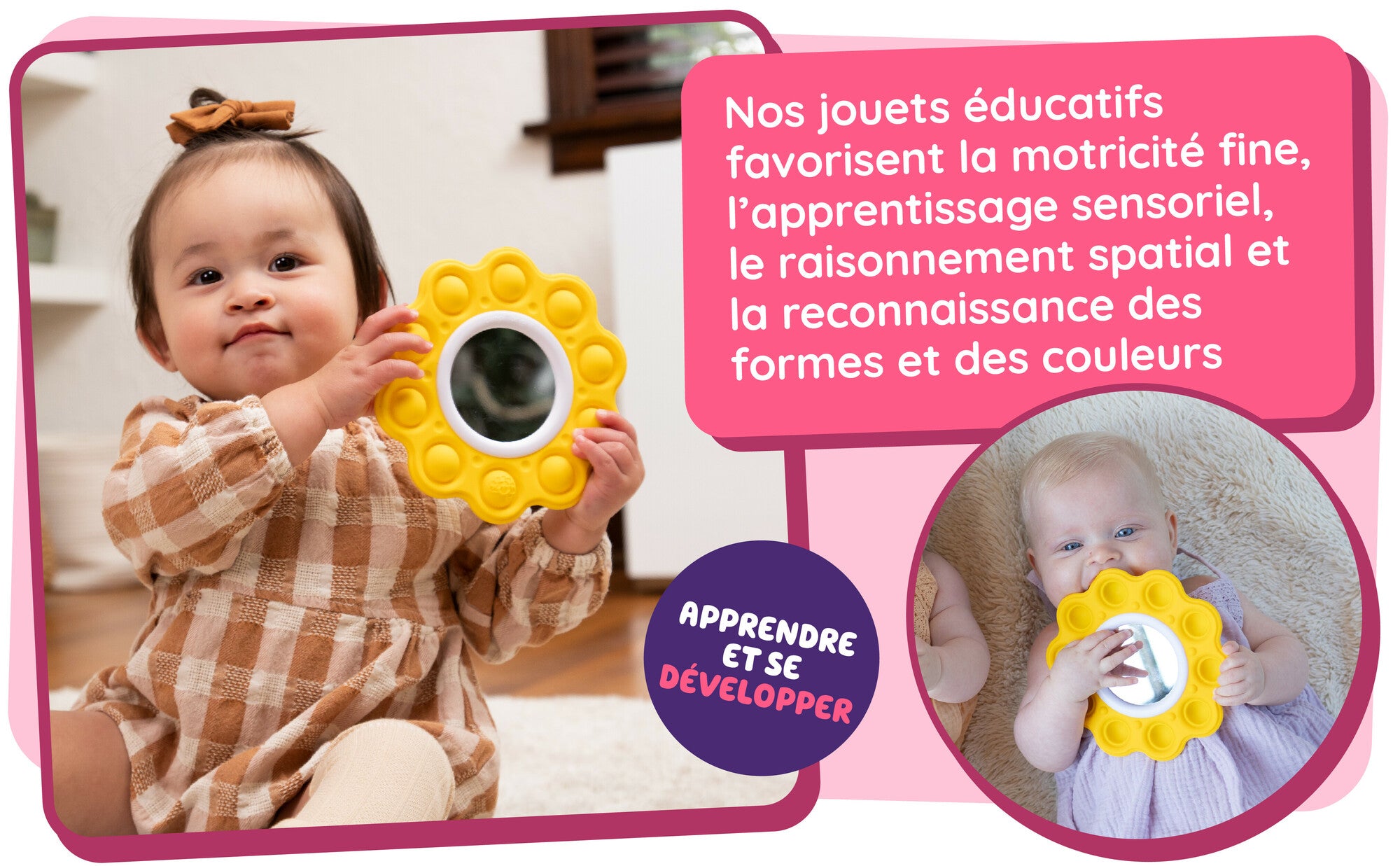 Il est doté d'un miroir double face qui captive les petits avec leurs propres reflets et favorise la prise de conscience de soi.