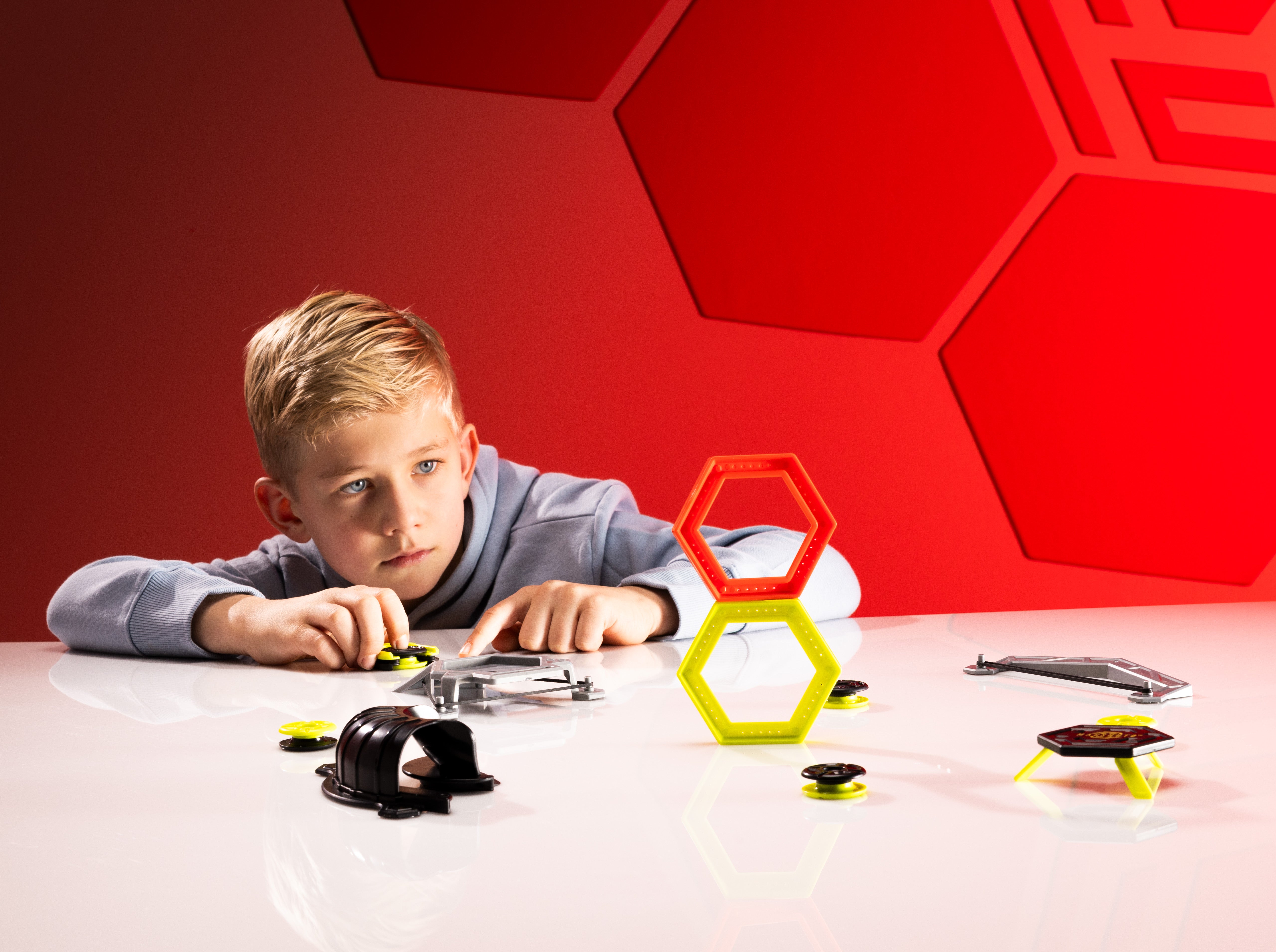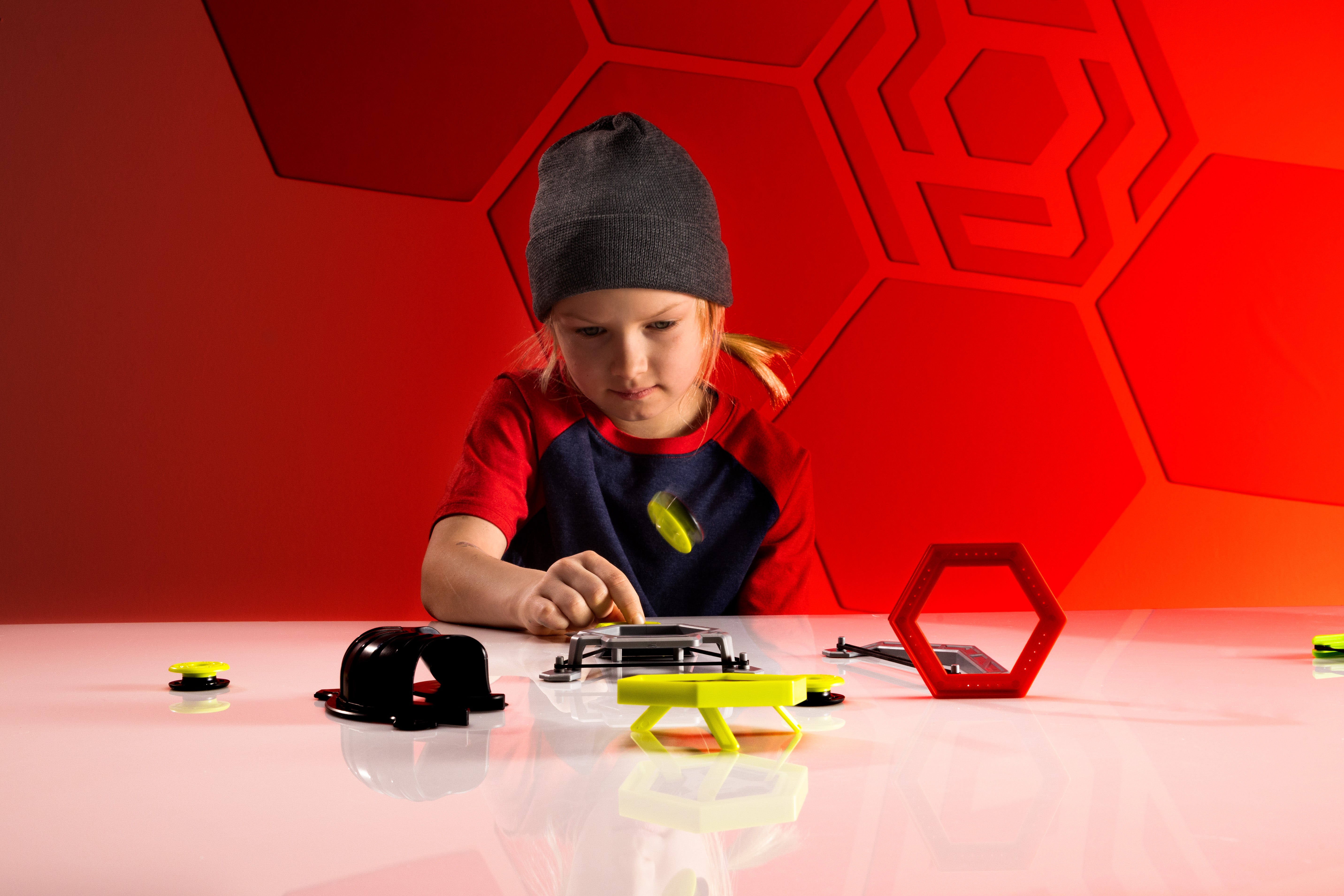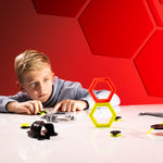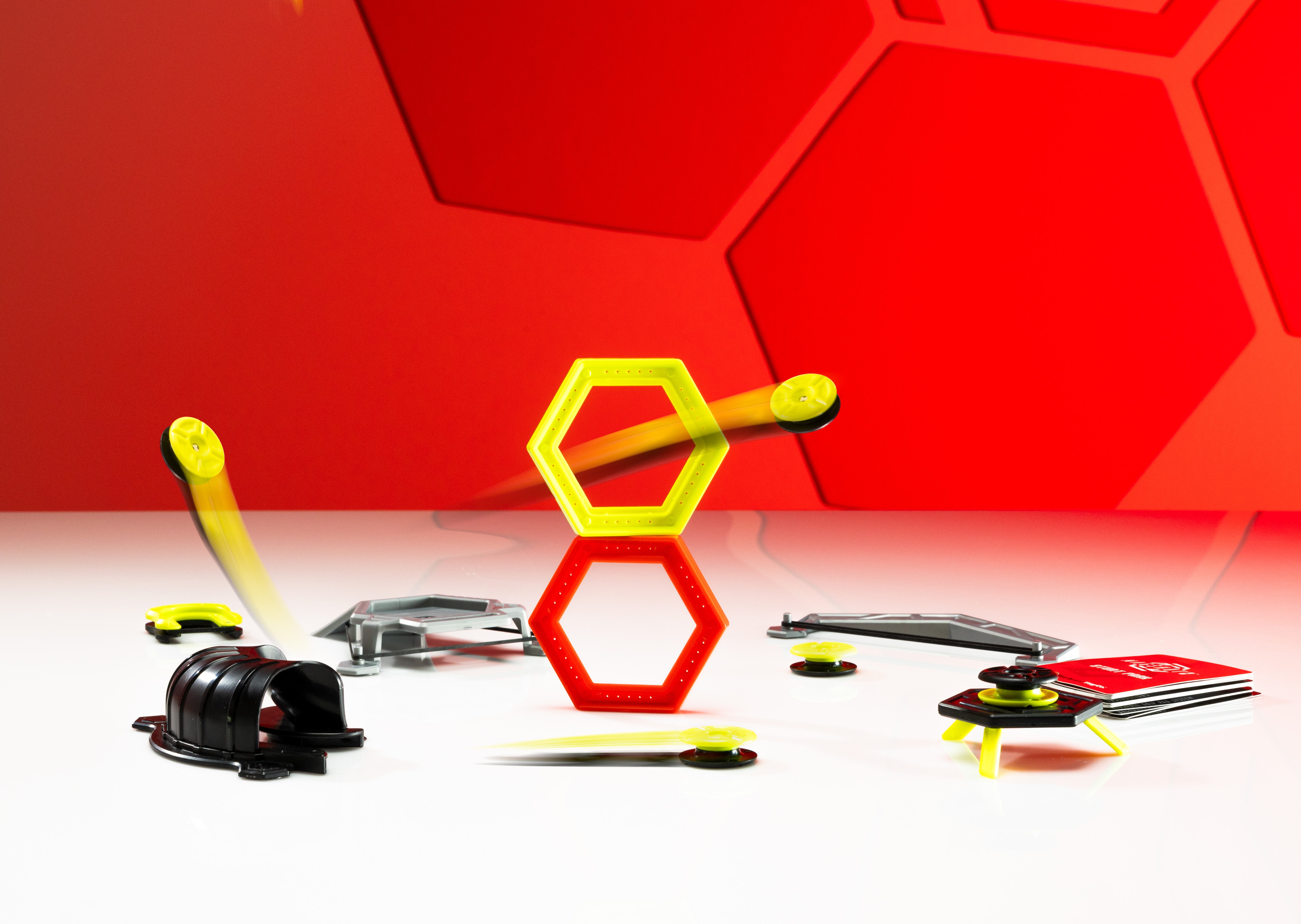 Comprend 1 lanceur, 1 module de cascades, 2 anneaux hexagonaux , 1 rampe à tunnel avec virage à 90° et rampe haute, 1 rebondisseur, 5 mag-pods, 1 cible magnétique mag-module et 15 cartes défis.