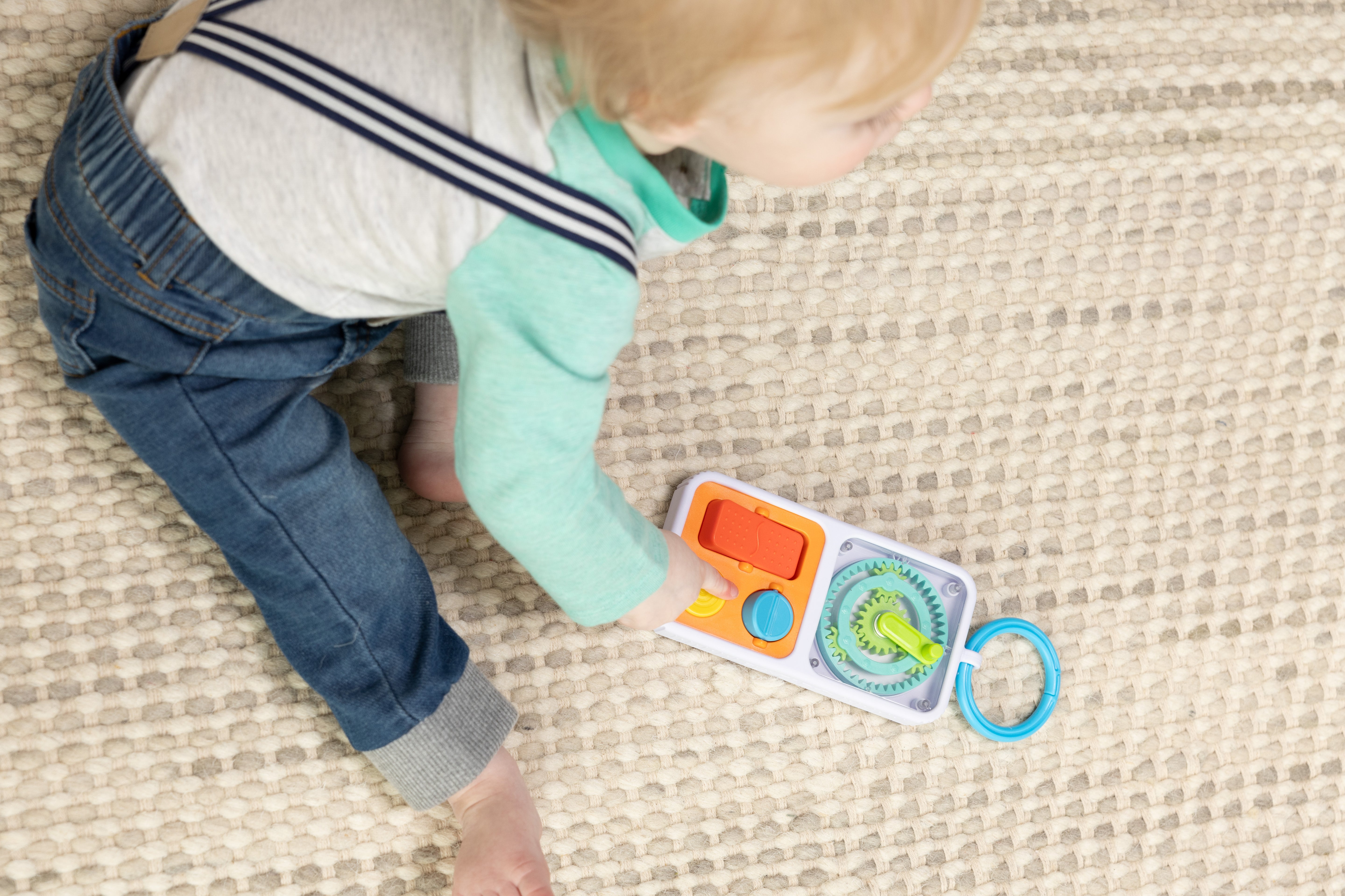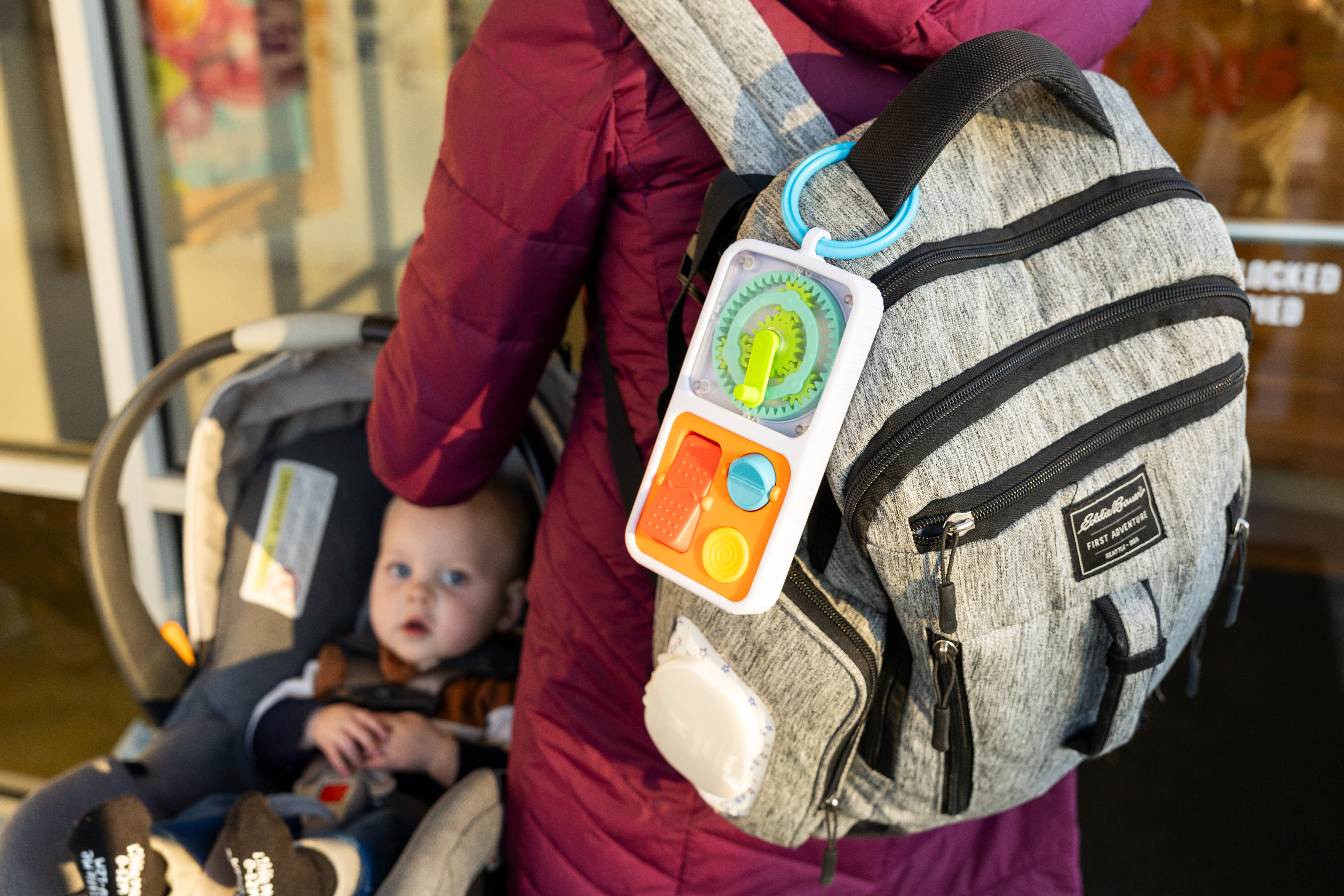 Grâce à son clip intégré, accrochez le à une poussette ou un siège auto pour un jeu toujours à portée de main.